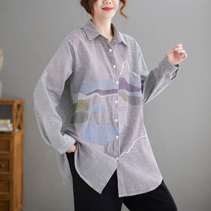 【綿麻ブラウス】ゆったりシルエット、無地デザイン、着痩せ効果、吸湿速乾、通気性抜群